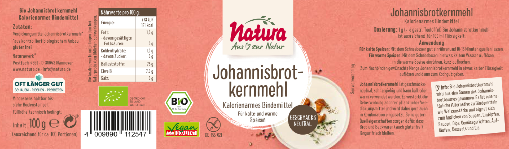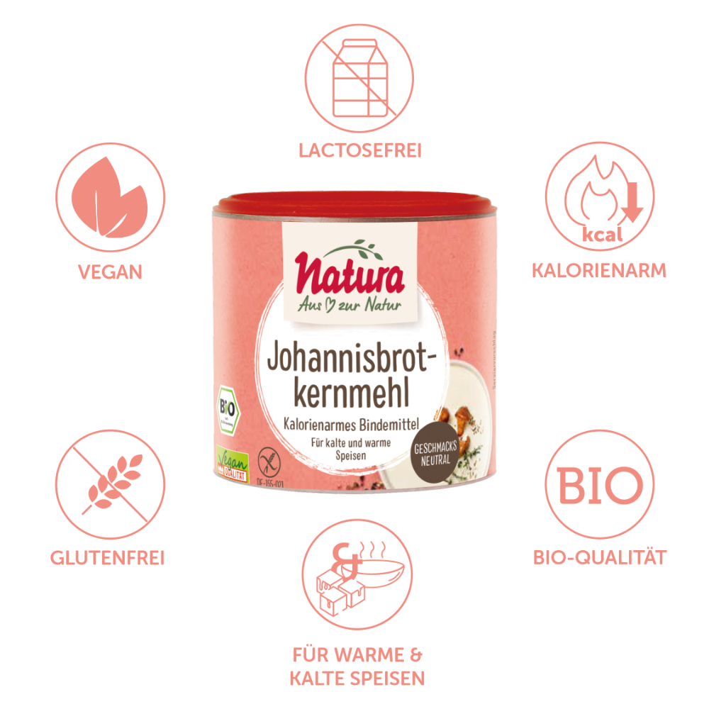Das Johannisbrotkernmehl wird aus den Samen des Johannisbrotbaums gewonnen und ist eine vielseitige, geschmacksneutrale Alternative zu herkömmlicher Stärke. Es eignet sich ideal zum Andicken von Suppen, Saucen, Cremes und Desserts – sowohl in warmen als auch in kalten Speisen.